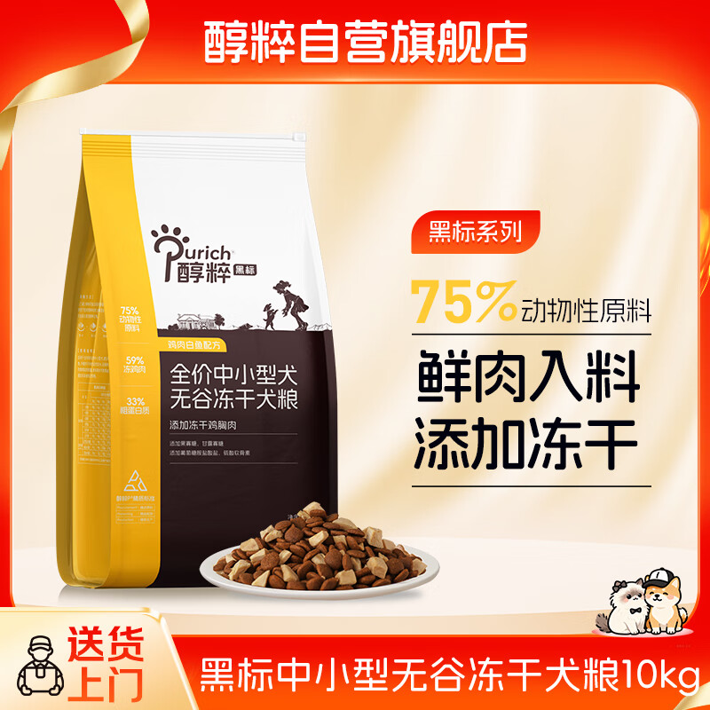 醇粹黑标狗粮中小型犬 鸡肉冻干全价犬粮边牧比熊成犬幼犬通用型10kg
