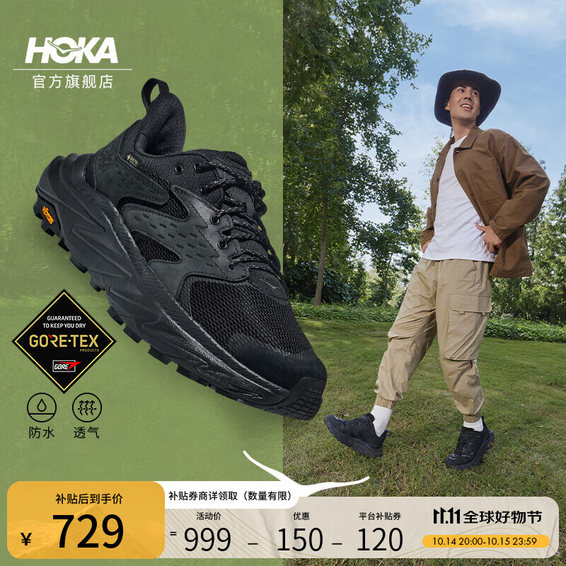 HOKA男女款秋季低帮防水户外登山鞋ANACAPA 2 LOW GTX 黑色/黑色-男 40.5