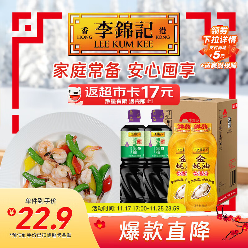 李锦记薄盐生抽 1.19kg*2+金蚝油 550g*2 组合装 家用常备调味品