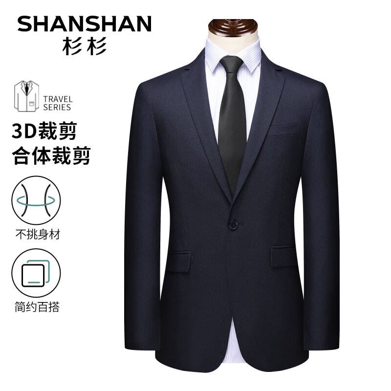 SHANSHAN杉杉易打理西服男春秋季纯色弹力修身西服商务休闲男西装外套衣 蓝色 170A