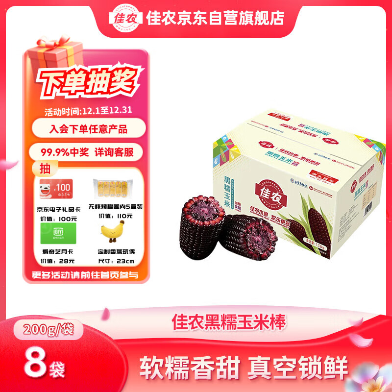 佳农 东北黑糯玉米棒3.6斤 软糯香甜 真空锁鲜 源头直发 包邮