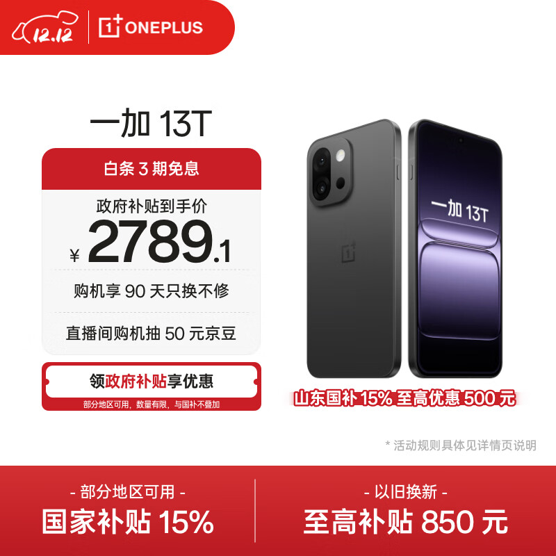 自营一加 13T 12GB+256GB 云墨黑 oppo 性能超强小直屏 骁龙 8 至尊版 冰川电池 AI 5G游戏拍照智能手机