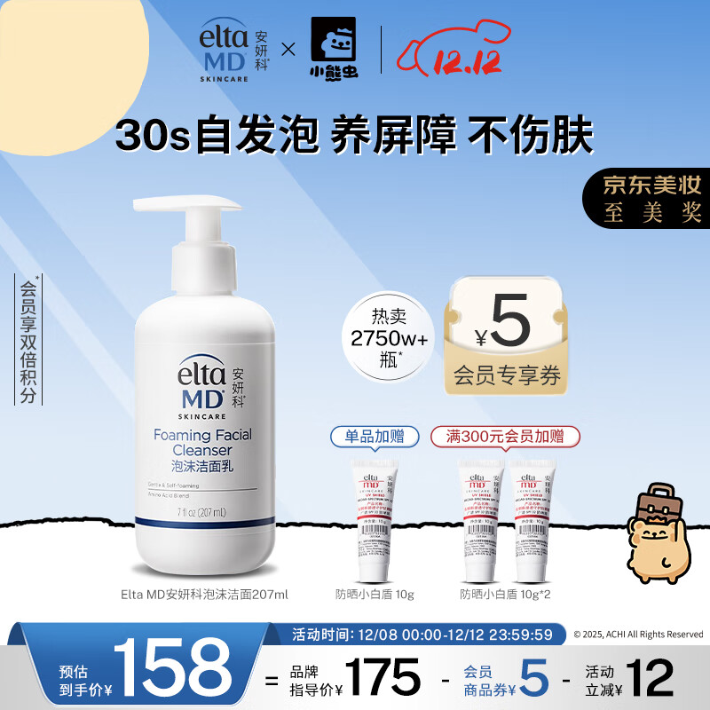自营Elta MD安妍科洗面奶男女士氨基酸敏感肌泡沫洁面乳207ml温和清洁卸防晒