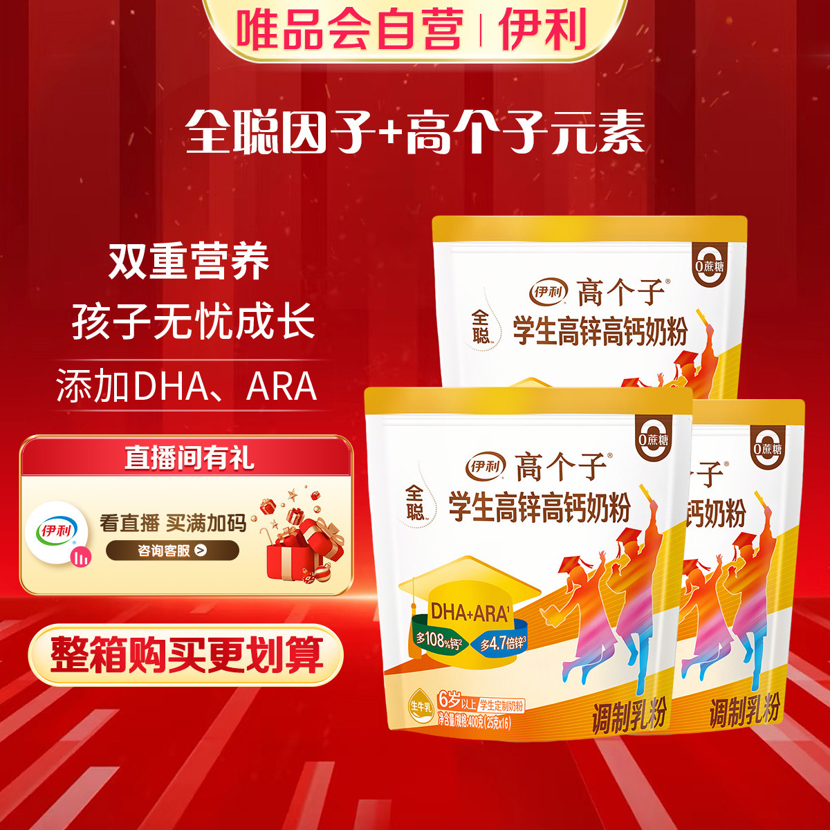 伊利yili 全聪学生高锌高钙奶粉400g*3袋 DHA/ARA生牛乳