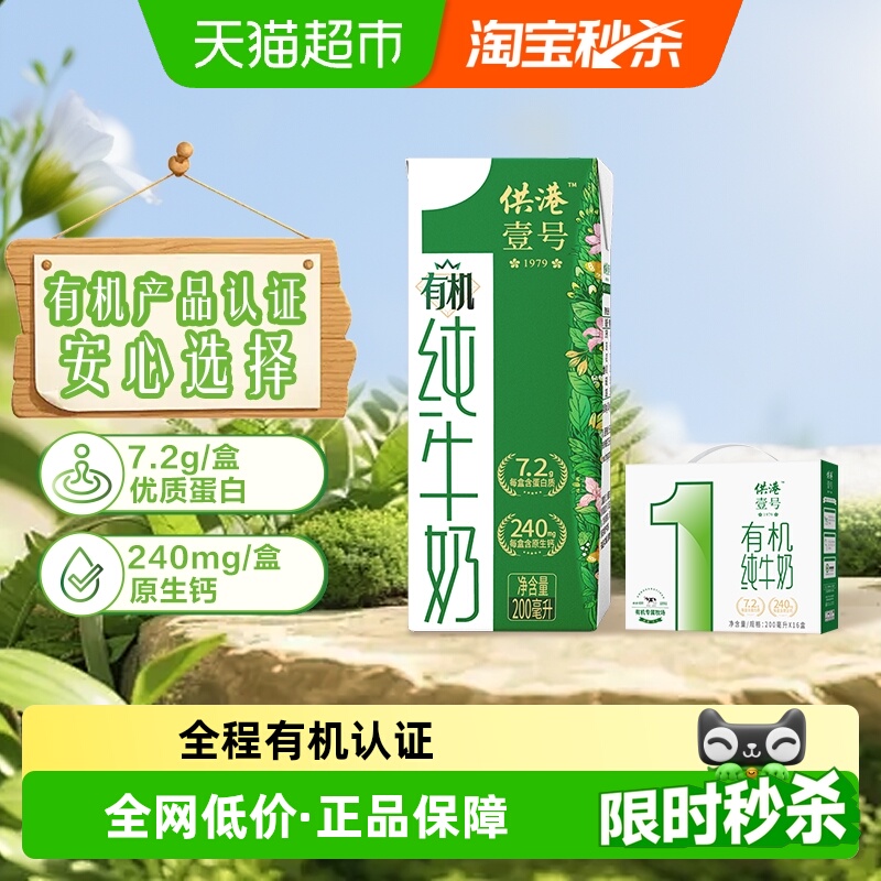 供港壹号有机纯牛奶200ml*16盒全脂营养早餐奶礼盒有提手过节送礼