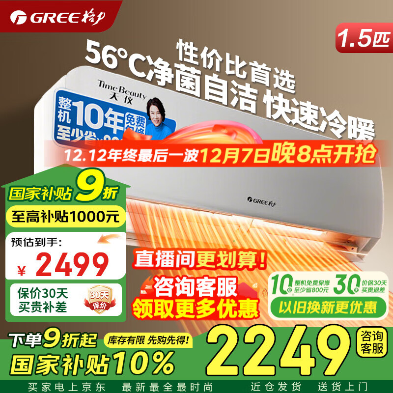 百亿补贴格力空调 云佳pro/天仪 1.5匹 新一级能效 变频冷暖 空调挂机 京东官方正品 家电国家补贴 以旧换新 1.5匹 天仪 新一级能效热销Top