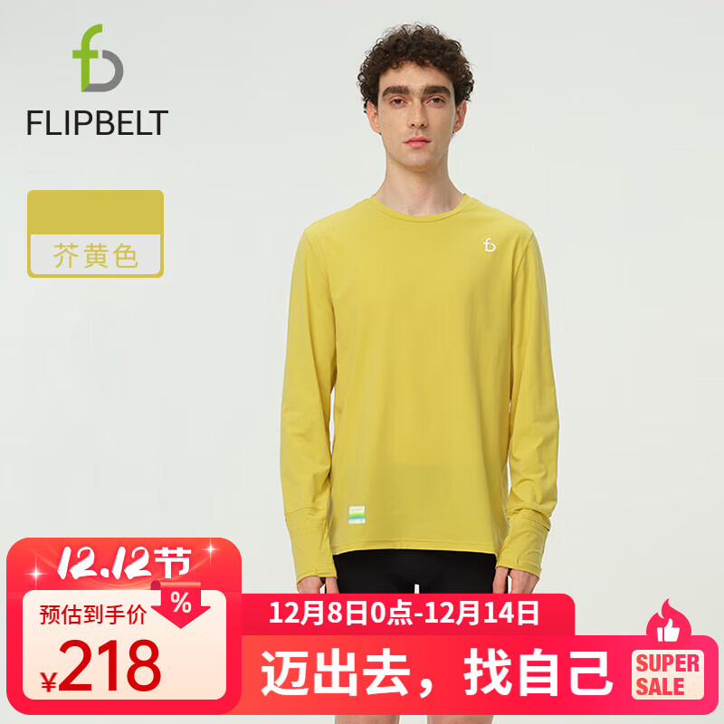 旗舰店Flipbelt飞比特长袖t恤男秋冬透气健身瑜伽跑步运动上衣休闲圆领速干 芥黄色 L