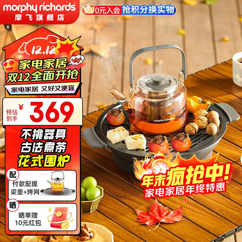 旗舰店摩飞电器(Morphyrichards)围炉煮茶套装 电陶炉全玻璃电水壶 养生水壶烧水烹茶一体机 MR6083 0.65L 深空灰(旗舰标配)