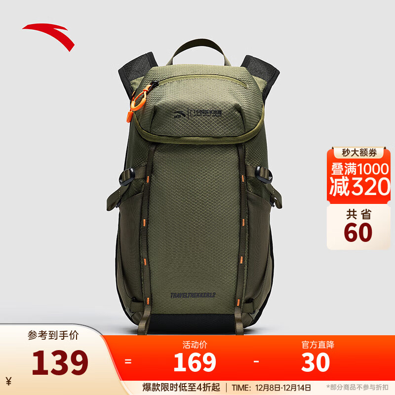 旗舰店安踏(ANTA)×中国国家地理丨金靖同款TT12男女户外双肩运动轻便旅行登山背包 【二代-12L】海鸭绿-2 均码