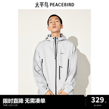 旗舰店太平鸟男装 秋季新款机能风连帽夹克男外套B2BCD3202 浅灰色1(阔型) M