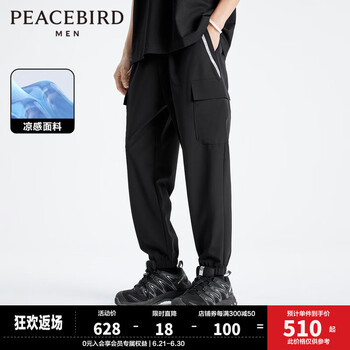 旗舰店太平鸟太平鸟男装【商场同款】夏季薄款休闲工装裤男裤子B2GLD2147 黑色1(锥型) S