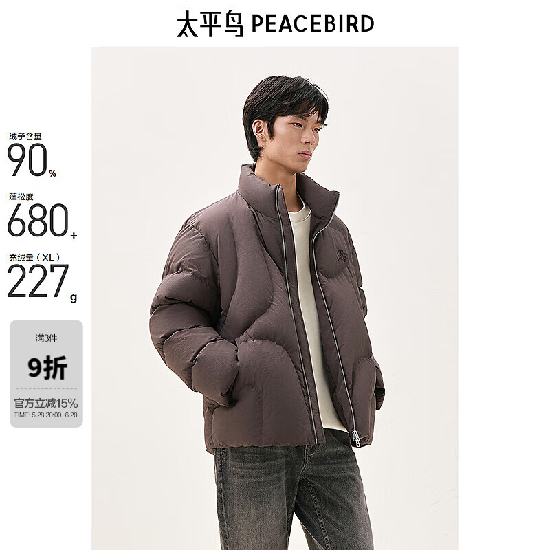 旗舰店太平鸟男装 美式复古面包服冬季新款宽松潮流羽绒防寒服男 深棕色 第一批 XL