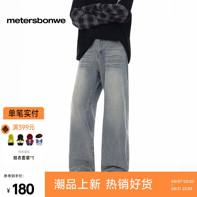 旗舰店美特斯邦威牛仔裤男士2025夏季新款休闲美式复古直筒宽松长裤 A款-牛仔中蓝 L 175/80A