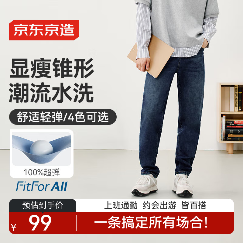 自营京东京造牛仔裤男士休闲裤四季百搭裤子男复古锥形 中蓝色 34