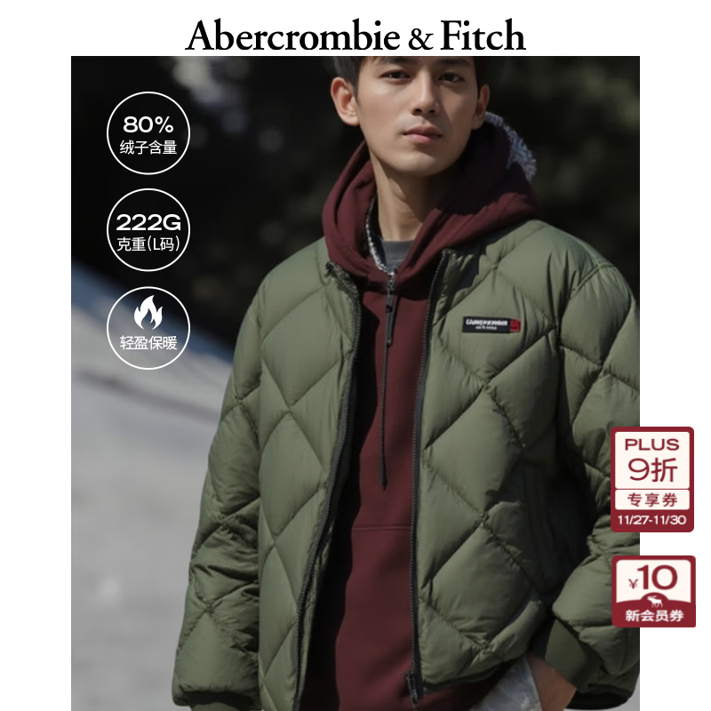 旗舰店Abercrombie & Fitch男装25秋冬新款菱格LOGO双头拉链保暖棒球服羽绒服132-5192 军绿色 S (175/92A)