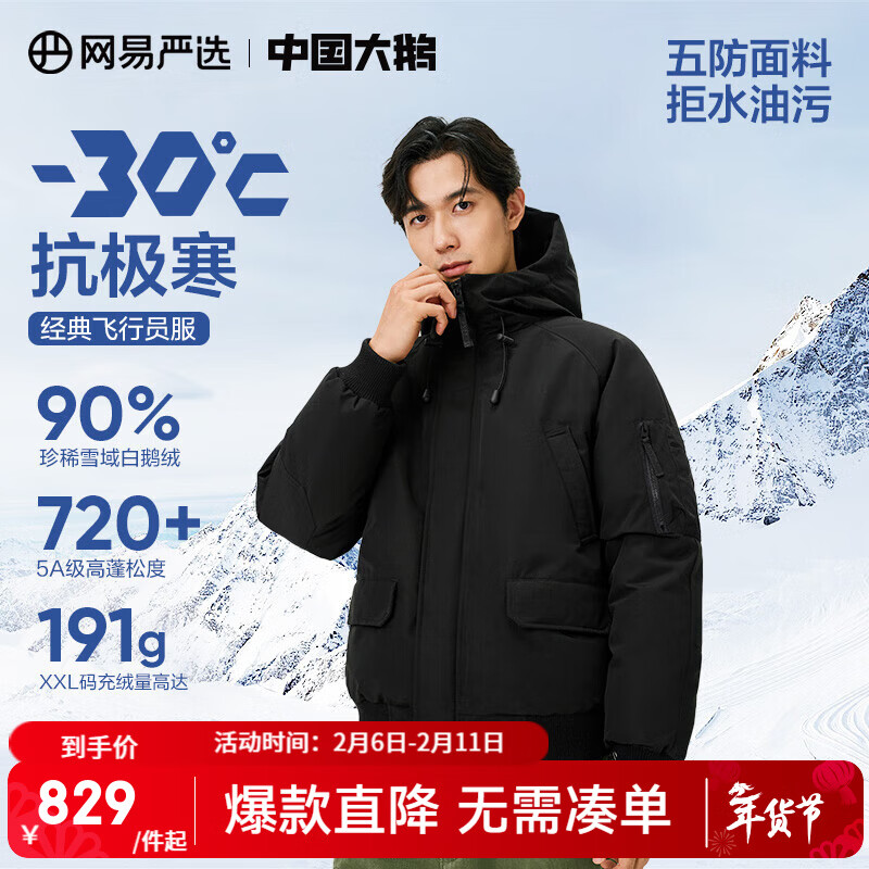 百亿补贴网易严选中国大鹅x燕云联名款地表强温90白鹅绒短款派克羽绒服-30℃抗寒 A款25秋冬-润泽黑 2XL
