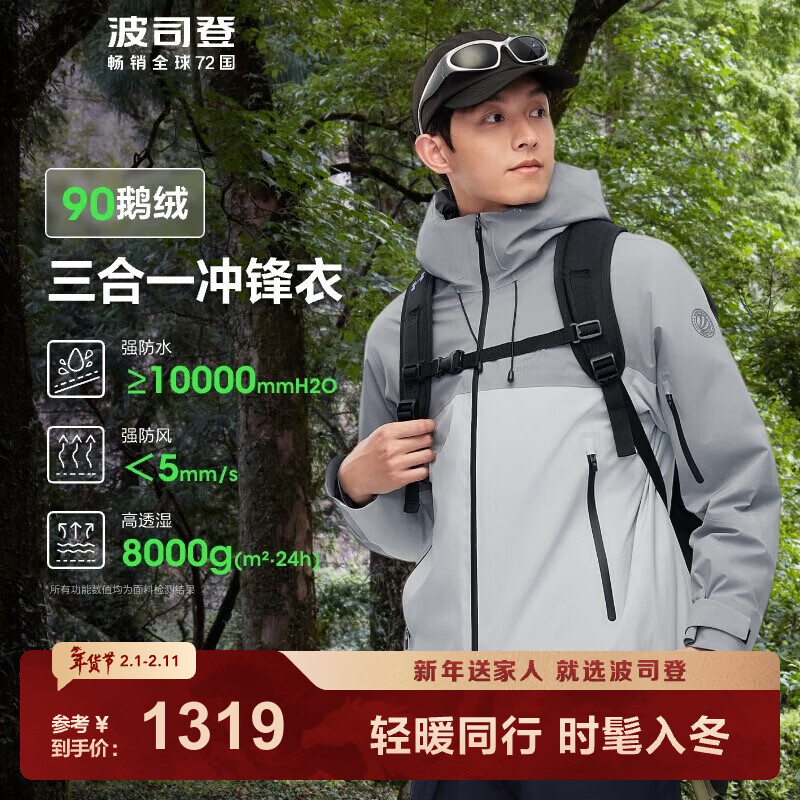 旗舰店波司登(BOSIDENG)谷爱凌同款冲锋衣鹅绒羽绒服短款男女同款90绒三合一登山外套 积岩灰 板岩灰898A L 170/92A