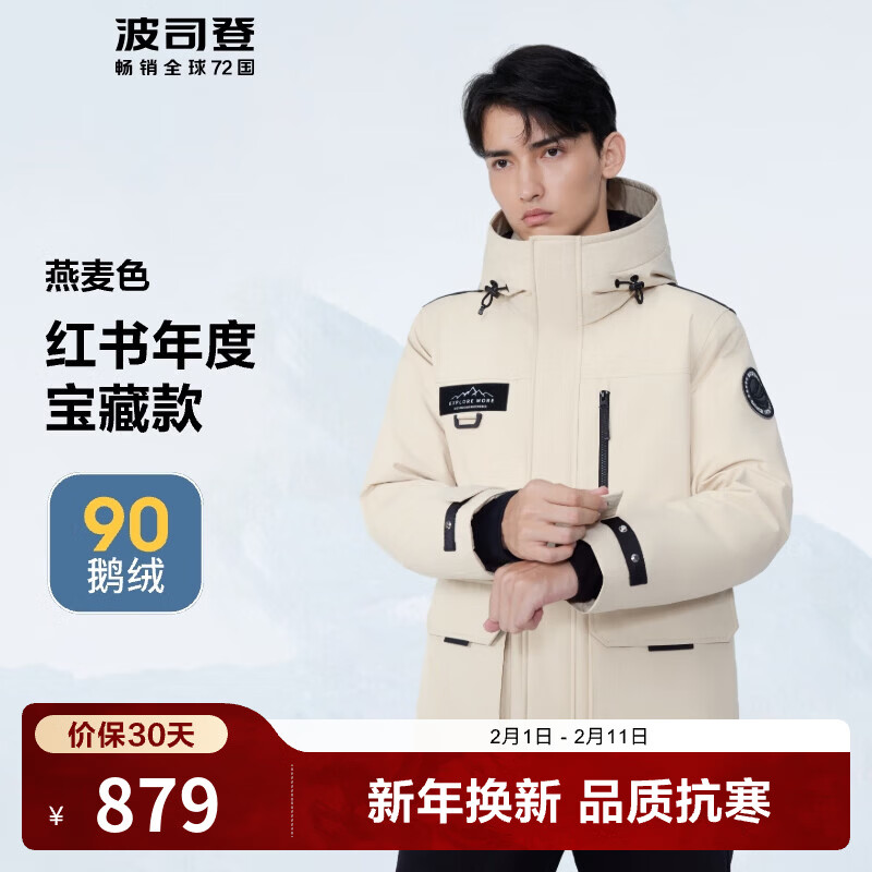 旗舰店波司登(BOSIDENG)【断码清仓】奥莱特价极寒鹅绒羽绒服男款加厚连帽保暖工装外套 燕麦色7185 XS 155/76A