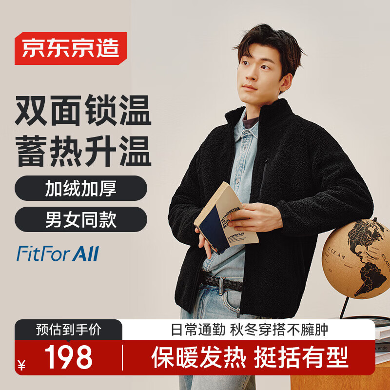 自营京东京造外套夹克男羊羔绒冬季新款宽松加厚保暖男装休闲衣服 黑色 L
