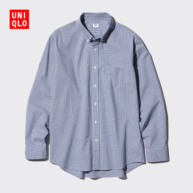 优衣库男装女装优质长绒棉格子衬衫长袖衬衣473281 66 蓝色 3XL