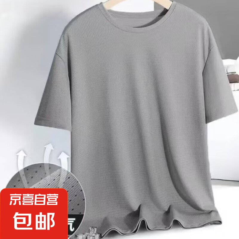 自营冰丝速干t恤男士大码短袖夏季运动透气凉感网眼体恤上衣服男ZB 浅灰色 2XL