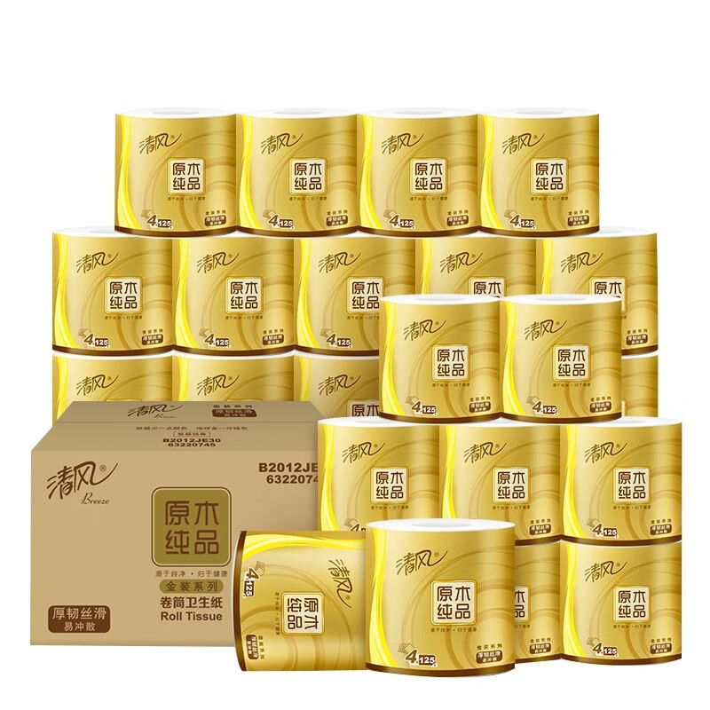 旗舰店清风卷纸卫生纸原木金装4层125克30卷整箱卷筒纸可湿水厕纸有芯卷纸 4层 125g/卷*30卷