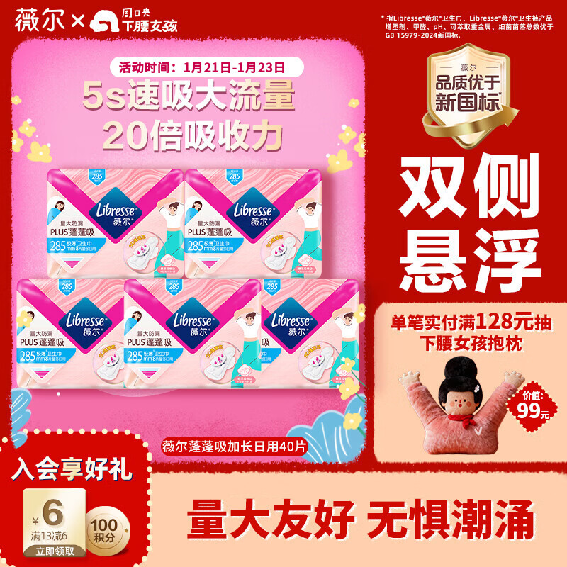 自营薇尔PLUS蓬蓬吸 超薄贴合透气防漏日用组合装40片京东自营姨妈巾