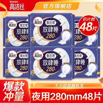 旗舰店高洁丝(Kotex)卫生巾 臻选阳光澳洲纯棉日用240mm极薄透气瞬吸无感姨妈巾 放肆睡夜用 280mm 48片