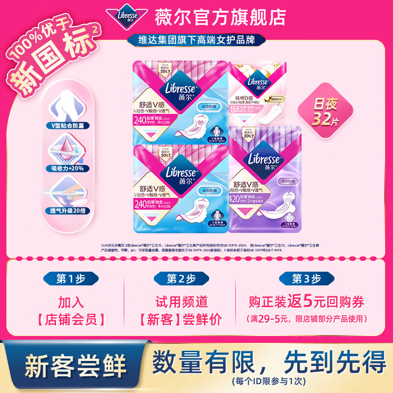 旗舰店优于新国标【任选10再送1包】薇尔卫生巾防漏干爽日用夜用安睡裤t
