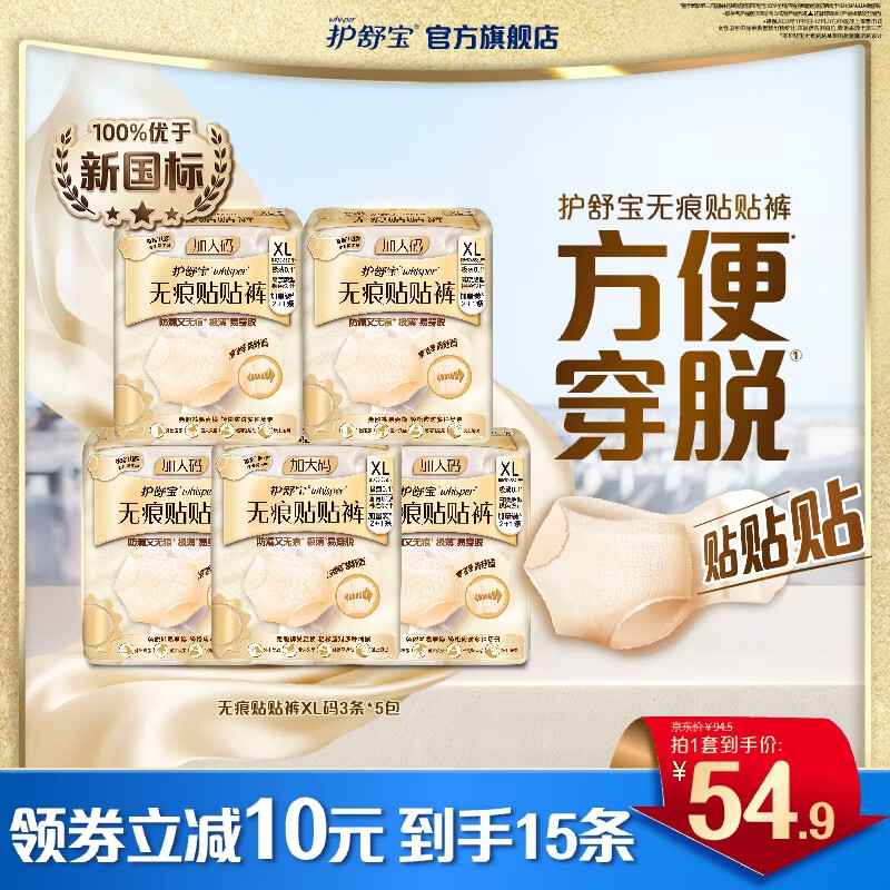 旗舰店护舒宝无痕贴贴裤安心裤早安裤卫生巾可粘贴安睡裤姨妈巾产后适用 XL 15条 120-170斤