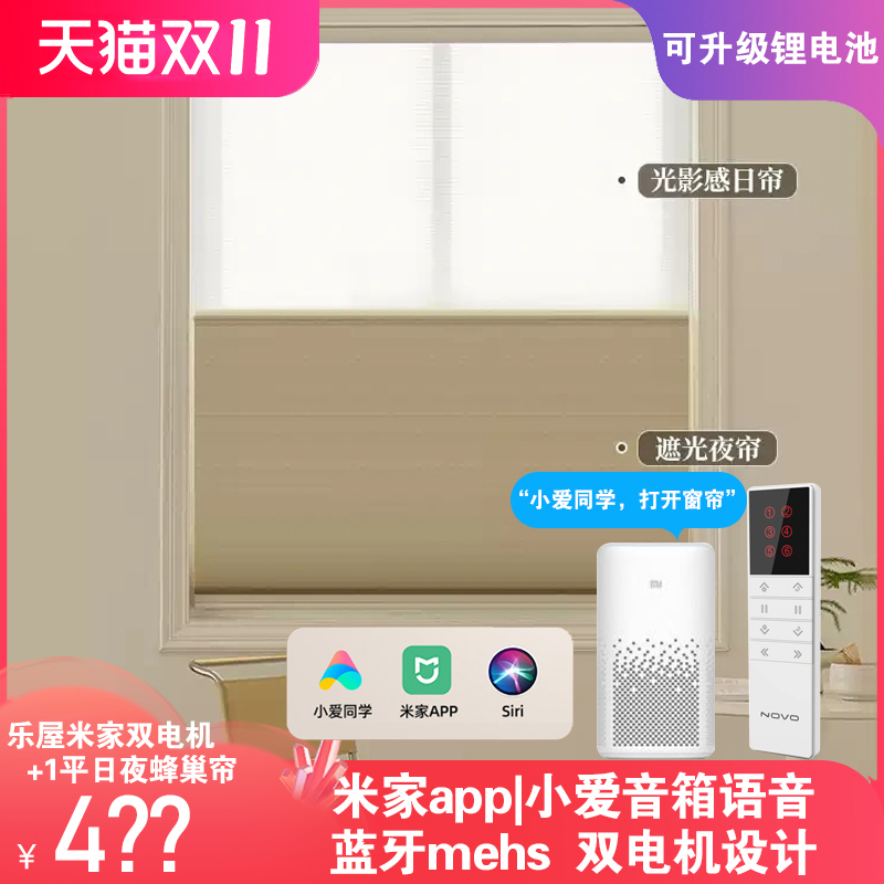 旗舰店乐屋电动日夜帘蜂巢帘蓝牙mesh已接入米家app双电机语音百叶风琴