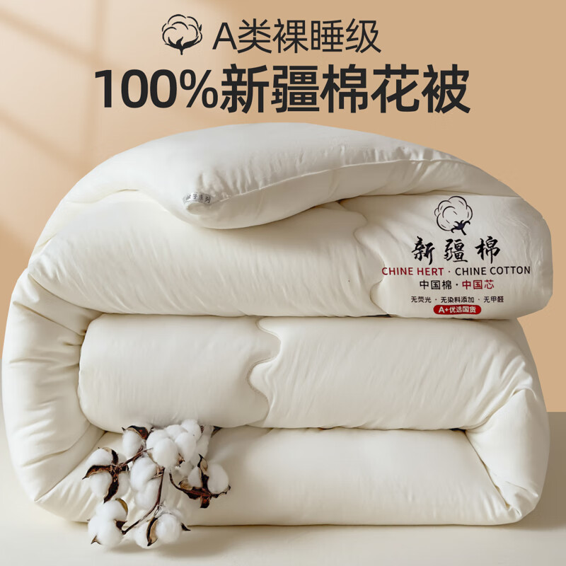 自营洁丽雅100%新疆长绒棉 棉花秋冬季被芯 2斤150*200cm 白