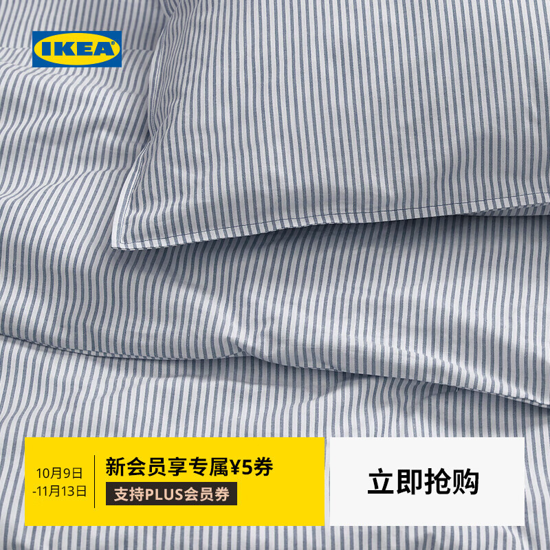 旗舰店宜家(IKEA)【新品】SOLFIBBLA索菲布拉被套枕套多件套纯棉可机洗 白蓝条纹被套和枕套150X200cm
