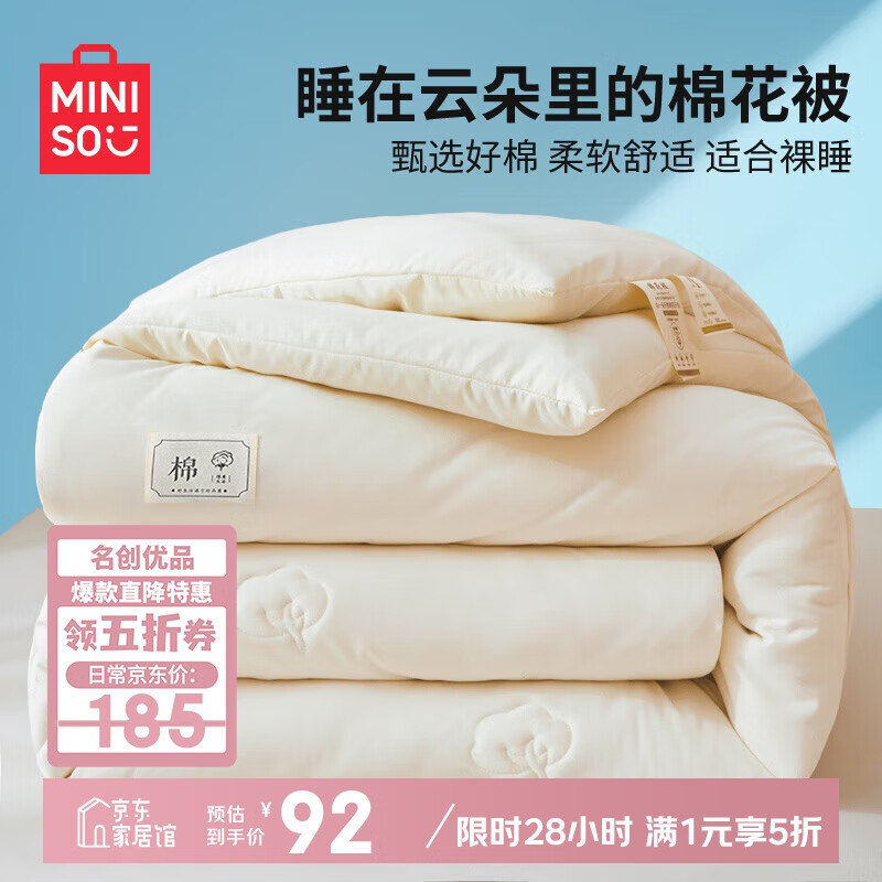 自营名创优品(MINISO)100%新疆纯棉花被子 秋冬空调被芯棉被加厚冬被200x230cm6斤