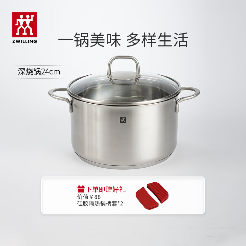 旗舰店双立人(ZWILLING)汤锅不锈钢深烧锅大容量煲汤炖肉锅煮汤锅煮面锅NovaPlus 深烧锅 24cm