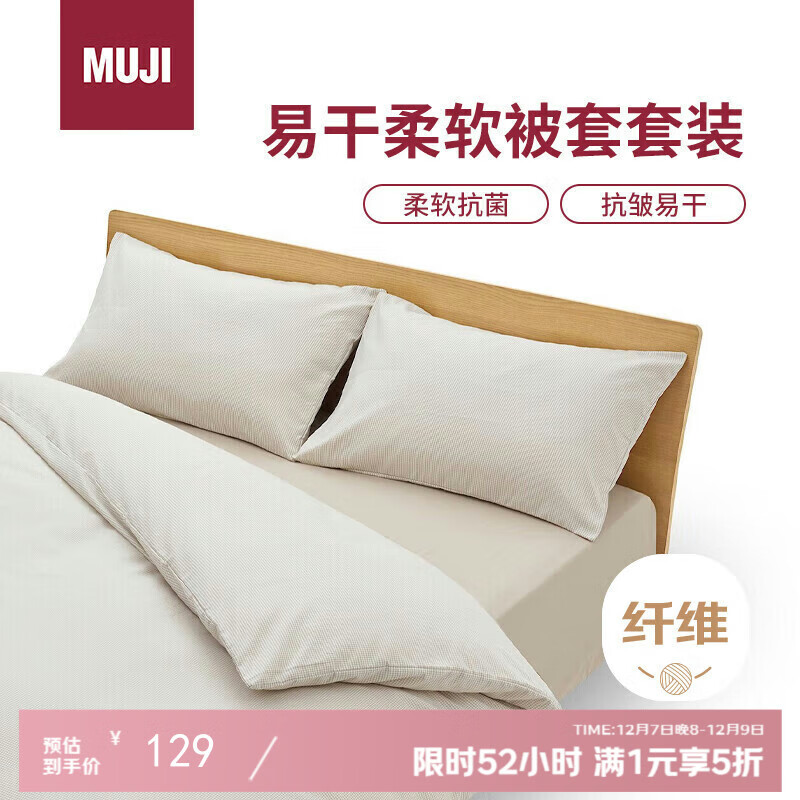 自营MUJI易干柔软被套套装 床上四件套 米色格纹 床单式/加大双人床用