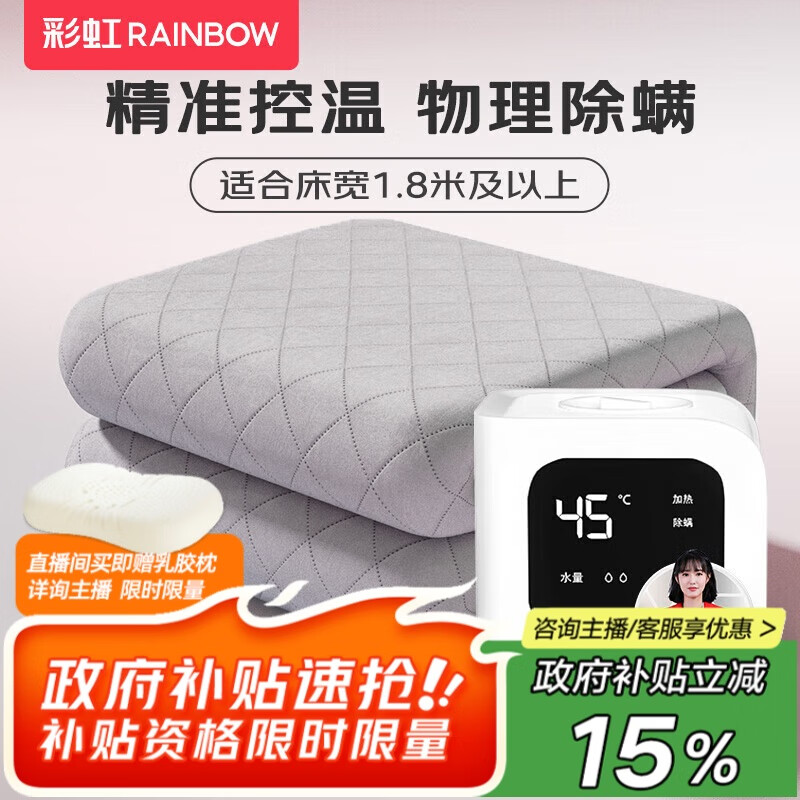 自营彩虹【高温断电】双人定时除螨双温双控无纺布电热毯电褥子1.8*1.5米