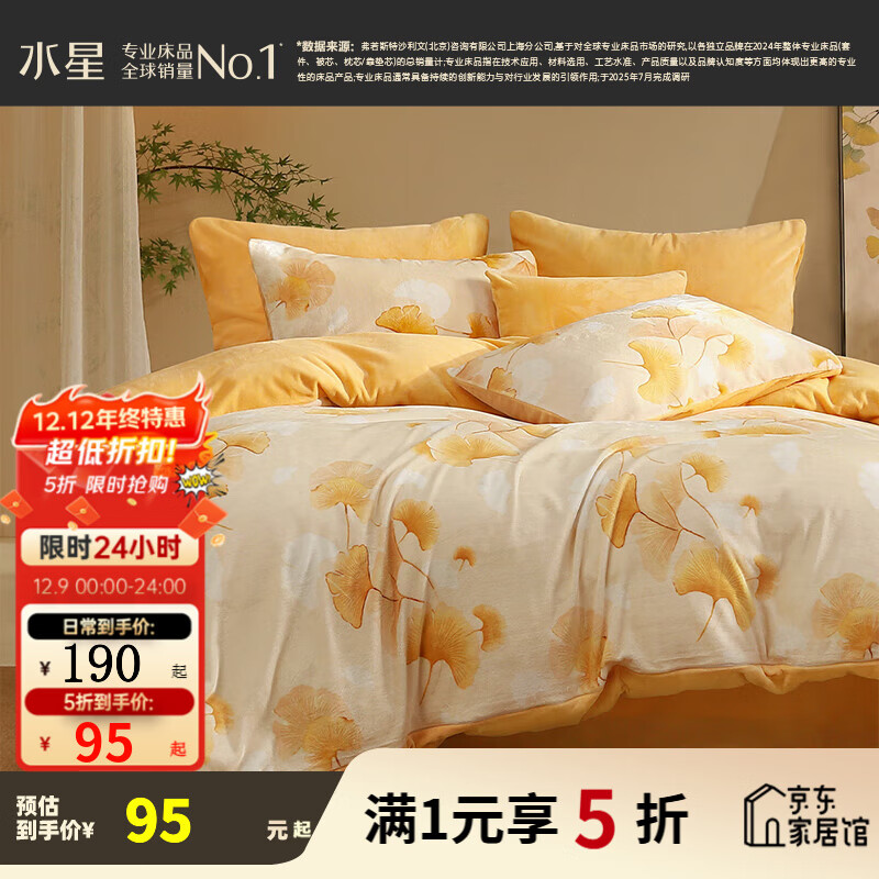 旗舰店水星家纺出品百丽丝牛奶绒三/四件套 A类加厚秋冬抗静电家用宿舍套件 浅杏梦羽【A类品质&抗静电】 1.2米床 床单款 (被套150*210cm)