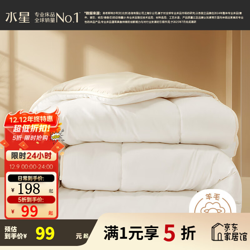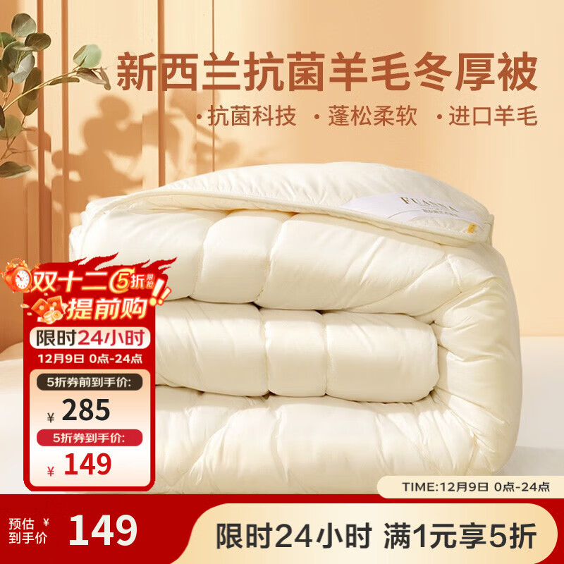 旗舰店水星家纺出品百丽丝澳洲进口羊毛被100纯羊毛被子被芯加厚保暖冬被春秋被 冬厚被【A类&100%澳洲羊毛】 双人被1.5/1.8米(被芯200*230cm)