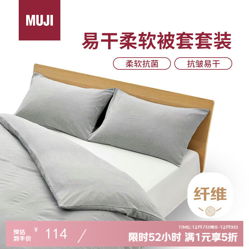 自营MUJI易干柔软被套套装 床上四件套 炭灰色格纹 床单式/双人床用