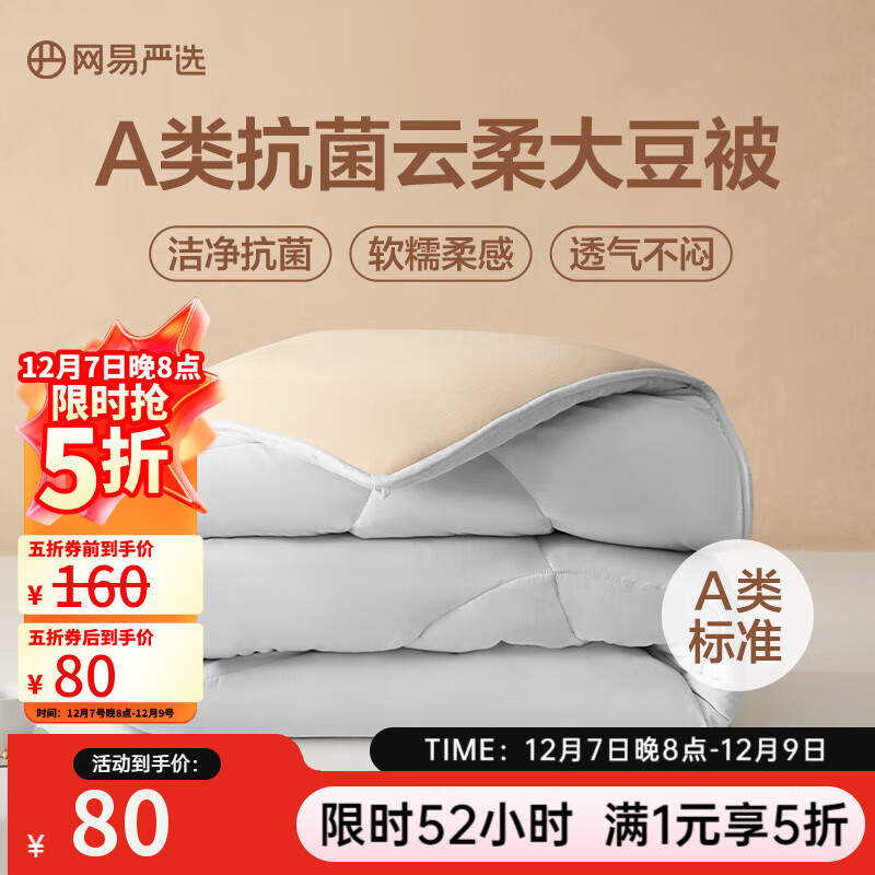 自营网易严选云感深睡大豆被 10%大豆纤维A类抗菌被子 5斤 200*230cm四季被灰