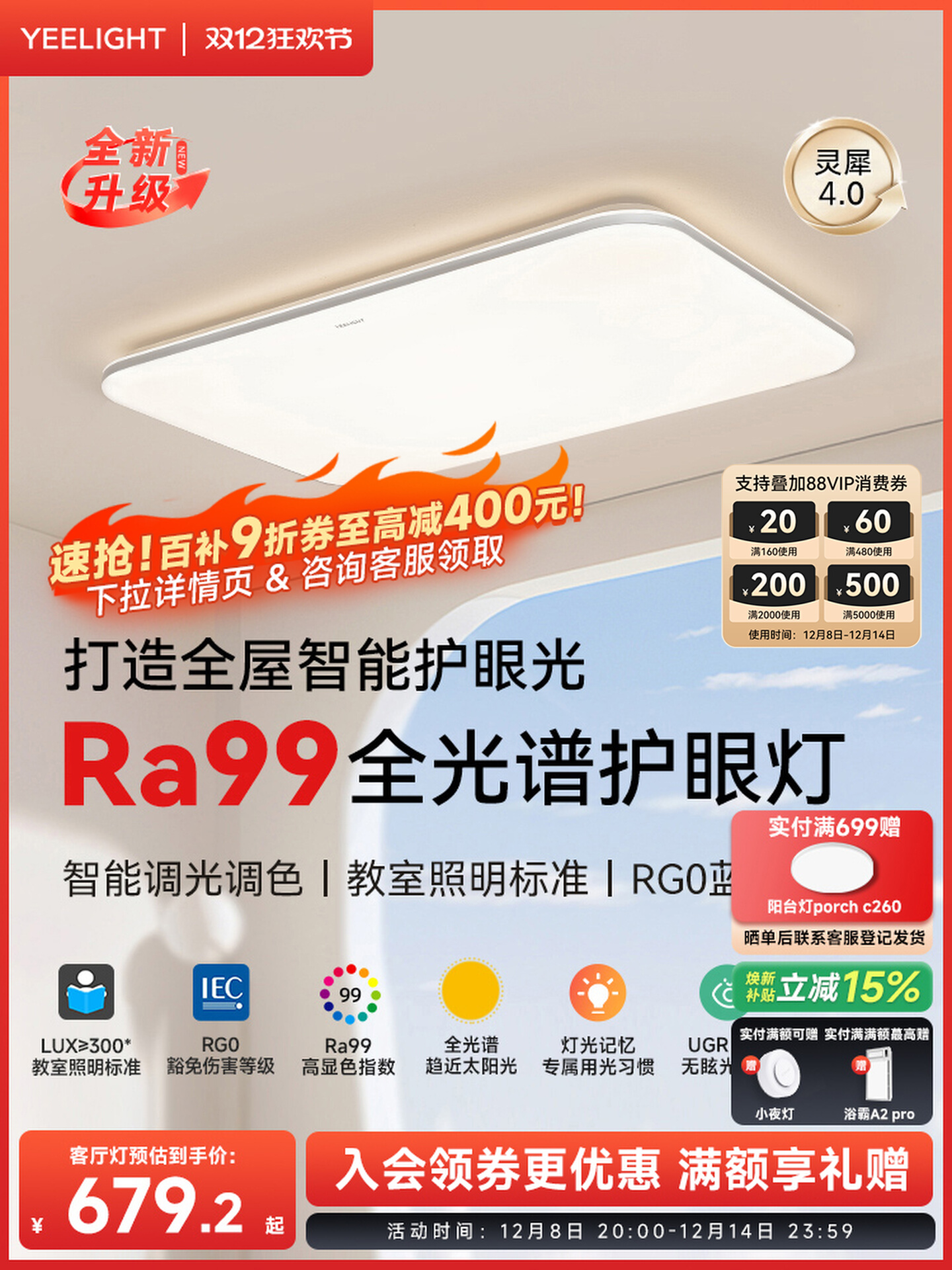 百亿补贴yeelight易来全光谱高亮吸顶灯全屋简约大气灯具智能客厅灯灵犀