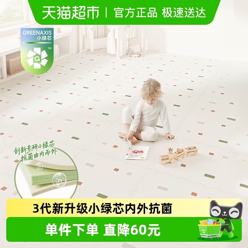 BabyGO拼接式爬爬垫小绿芯25年新升级爬行垫安全内外抗菌拼接垫