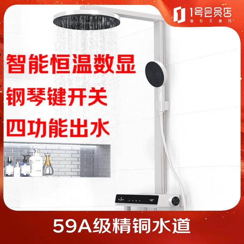 1号会员店(One's Member)恒温数显花洒套装 钢琴键增压贴墙奶白色包安装