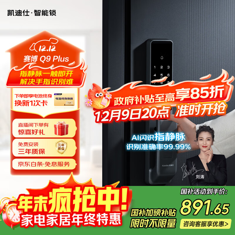 自营凯迪仕(kaadas)智能门锁 指静脉指纹识别 智能锁 电子锁密码锁 赛博Q9 Plus
