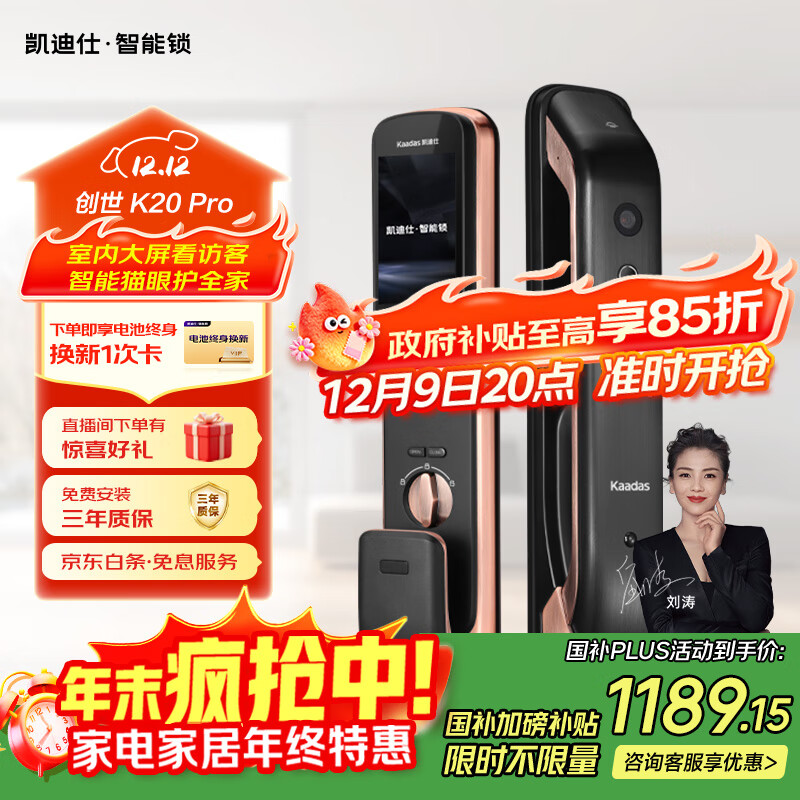 自营凯迪仕(kaadas)智能门锁人脸识别可视猫眼大屏全自动指纹锁密码锁 Q20F Pro双摄