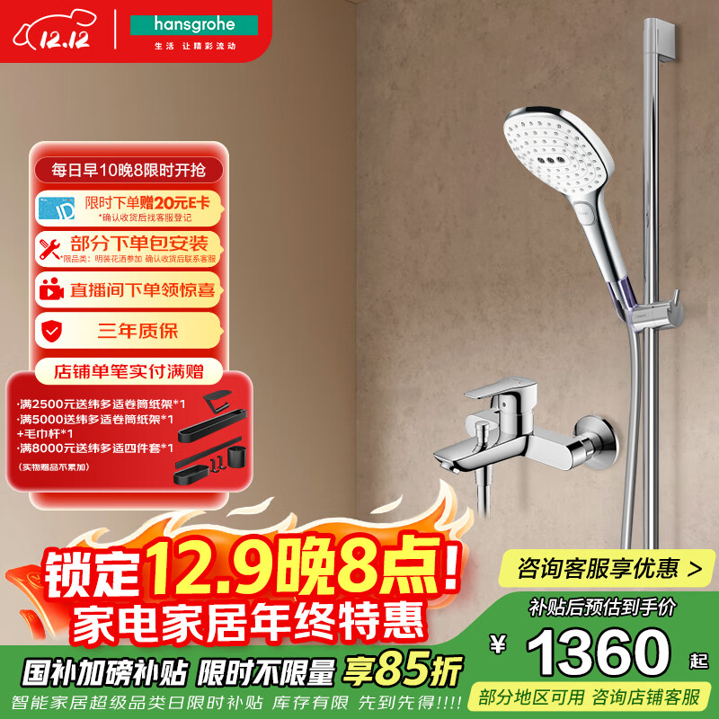 自营汉斯格雅(Hansgrohe)飞雨SelectS120浴室变速淋浴花洒 浴缸下出水龙头套装非恒温