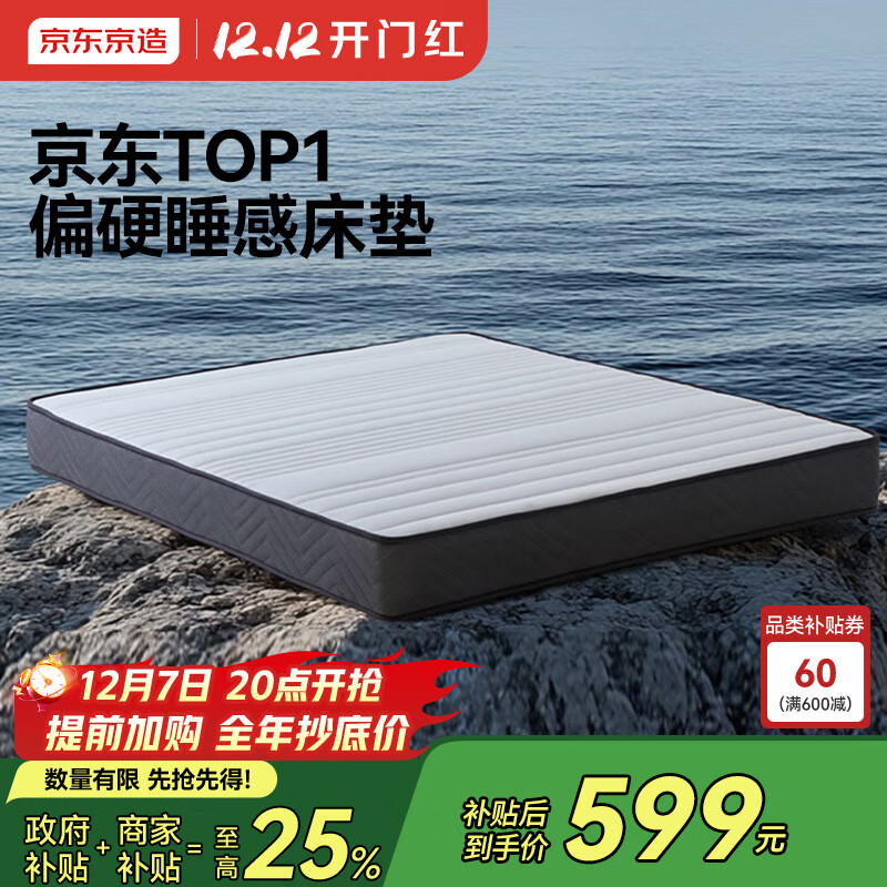 自营京东京造家居弹簧床垫 黄麻棕邦尼尔弹簧 席梦思床垫1.5×2米
