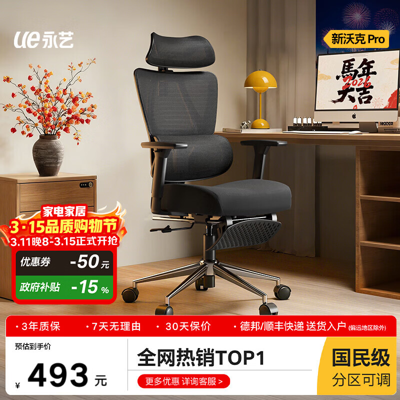 旗舰店永艺新沃克Pro 动态人体工学椅办公椅电脑椅电竞椅家用单人座椅4D扶手 新沃克pro高配黑色【带脚托+调腰】