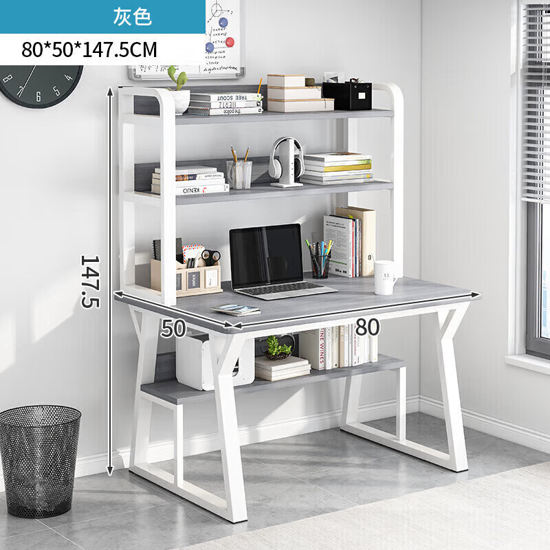 LISM创意家居书桌书架一体家用卧室台式学生出租屋写字简易收纳架 灰色双层80*50cm